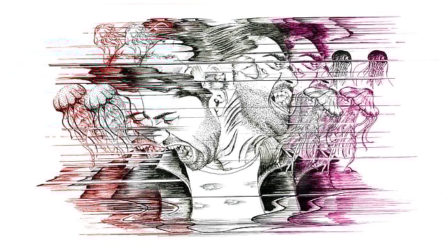 An illustration from art series; 'Something about me', the illustration is a depiction of the emotions that were running through his mind while making a difficult transition from engineering to design.